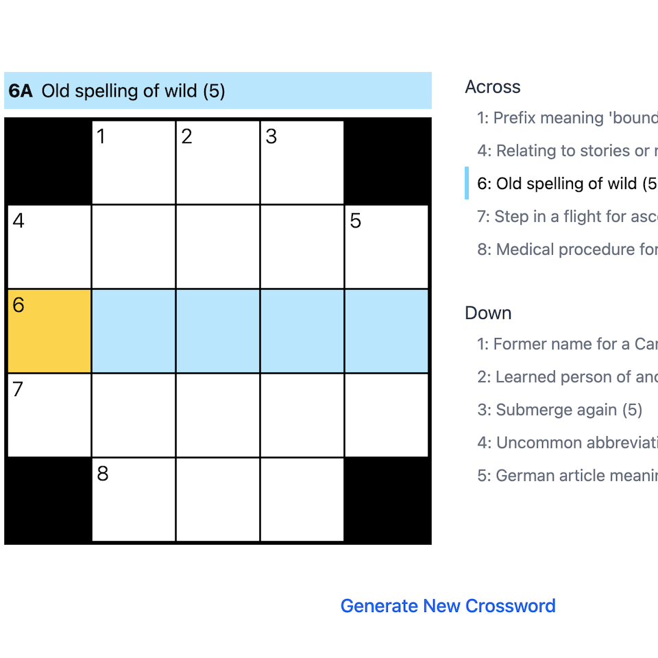 NY Times mini crossword clone using Go, SolidJS and OpenAI